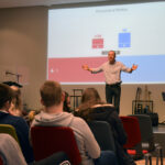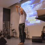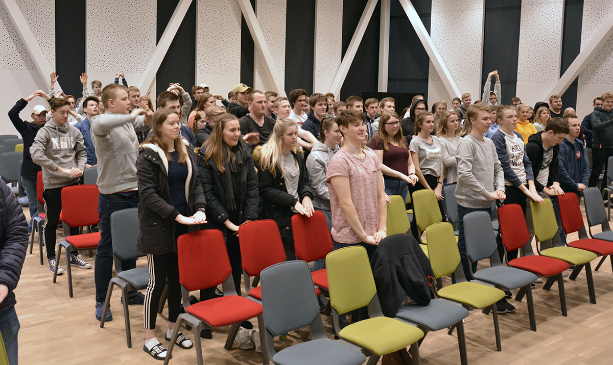 Klasserom var bytta ut med møtesal for elevane i VG1 og VG2 då ”Reisa gjennom Bibelen” stod på timeplanen denne fagdagen. På podiet står Per Hjemdal som har vore prest i Den norske kyrkja i Etne sidan 2010. Han har snakka litt om kor mange språk Bibelen finst på, og kvifor det er viktig at Bibelen stadig blir omsett til nye språk. Ein kahoot der elevane må svara på om ulike namn og uttrykk stammar frå Bibelen, er òg ein del av programmet.